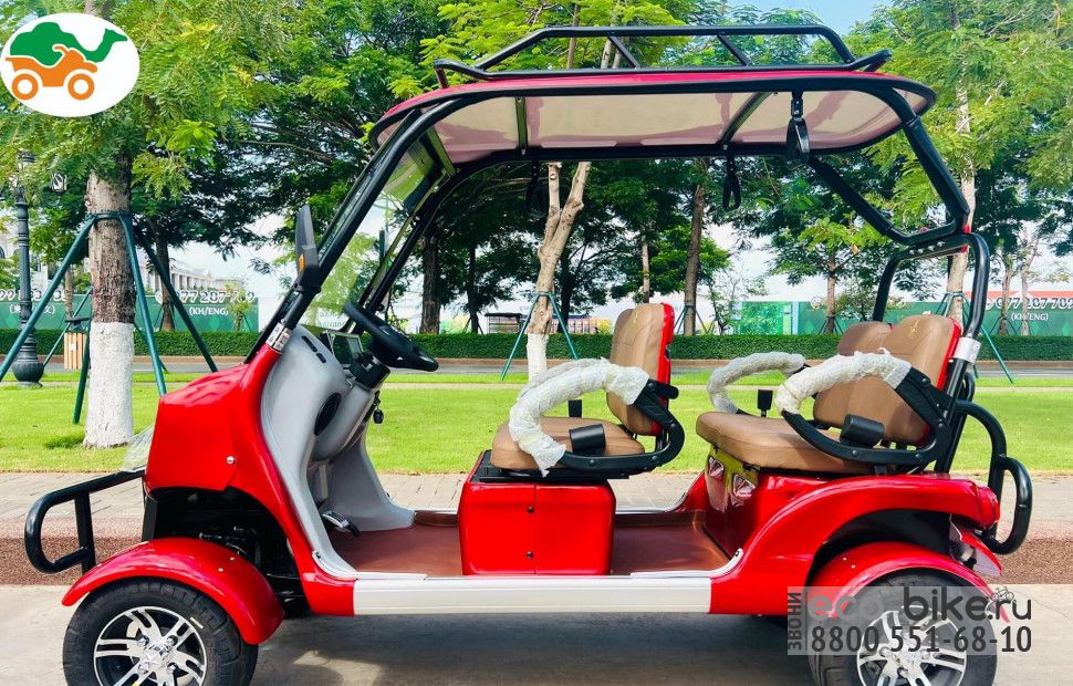 Четырехместный гольфкар представляет собой электрическое транспортное средство, спроектированное для перевозки четырех пассажиров, часто используется на гольф-полях, в коммерческих и индустриальных сферах, таких как курорты, заводы, склады, аэропорты, парки и другие места, где требуется эффективный и экологичный способ перевозки пассажиров. Электрические гольфкары считаются более экологичными, так как не выбрасывают вредных газов и имеют низкий уровень шума, что особенно важно в рабочих местах, где шум может быть проблемой.